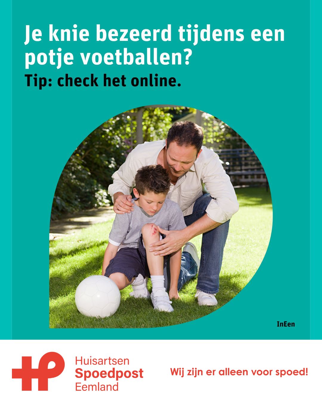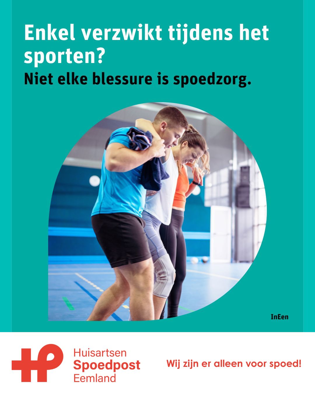 Eventuele vervolgtekst: Veel mensen sporten ’s avonds of in het weekend. Juist dan is de eigen huisartsenpraktijk gesloten. Heb je pijn of twijfel je of je met spoed hulp nodig hebt? Kijk eerst online op huisartsenspoedposteemland.nl.