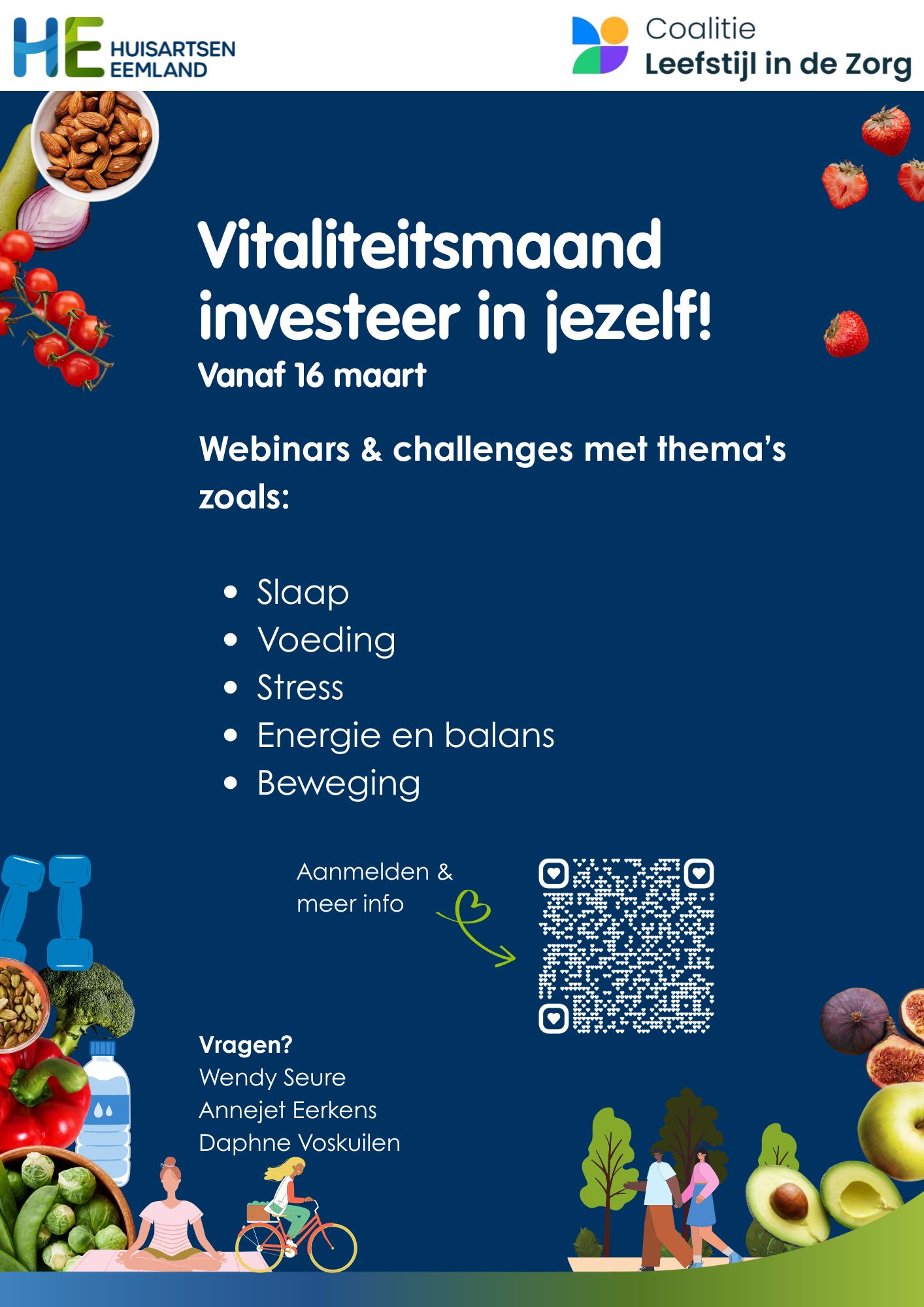 We organiseren een Vitaliteitsmaand voor medewerkers uit de praktijken, collega’s van HE en de HAP.